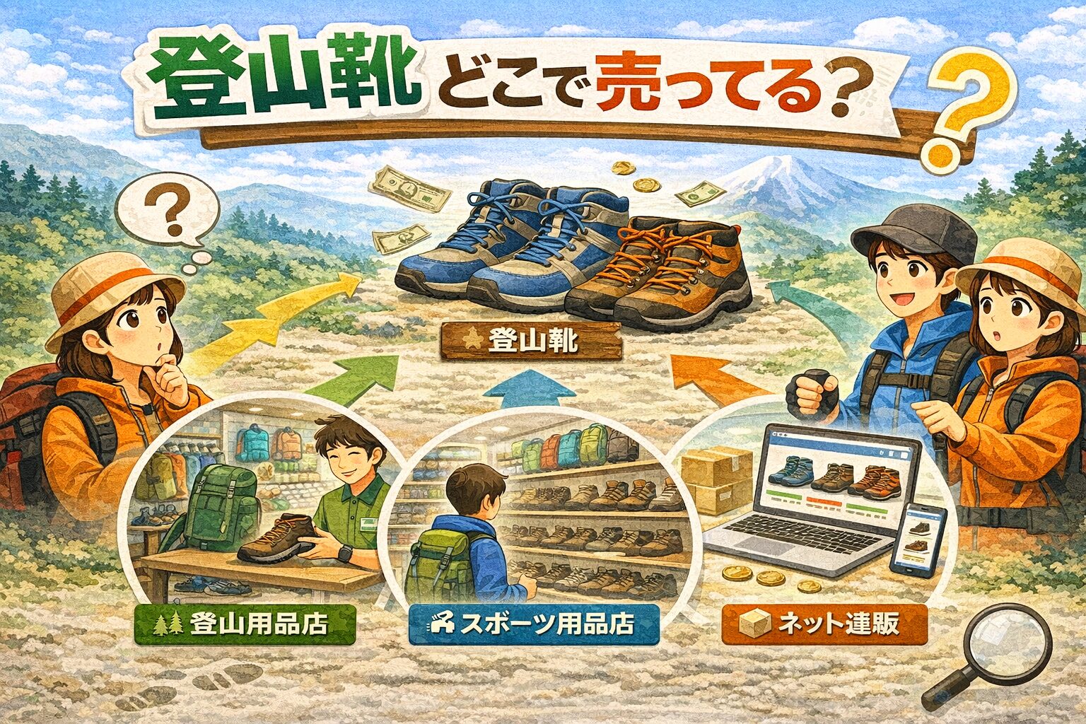 登山靴は、購入場所によって選びやすさやサポート体制が大きく異なります。専門店では丁寧なフィッティングが受けられ、大型スポーツショップや通販では幅広いモデルを... 装備・アイテム