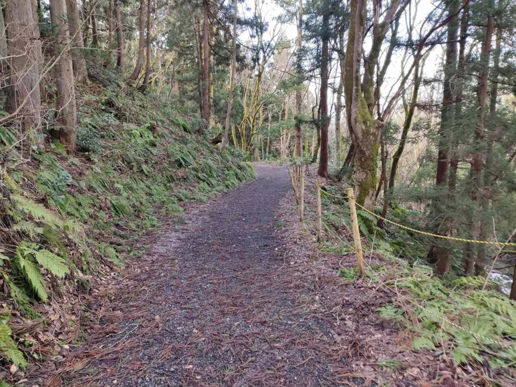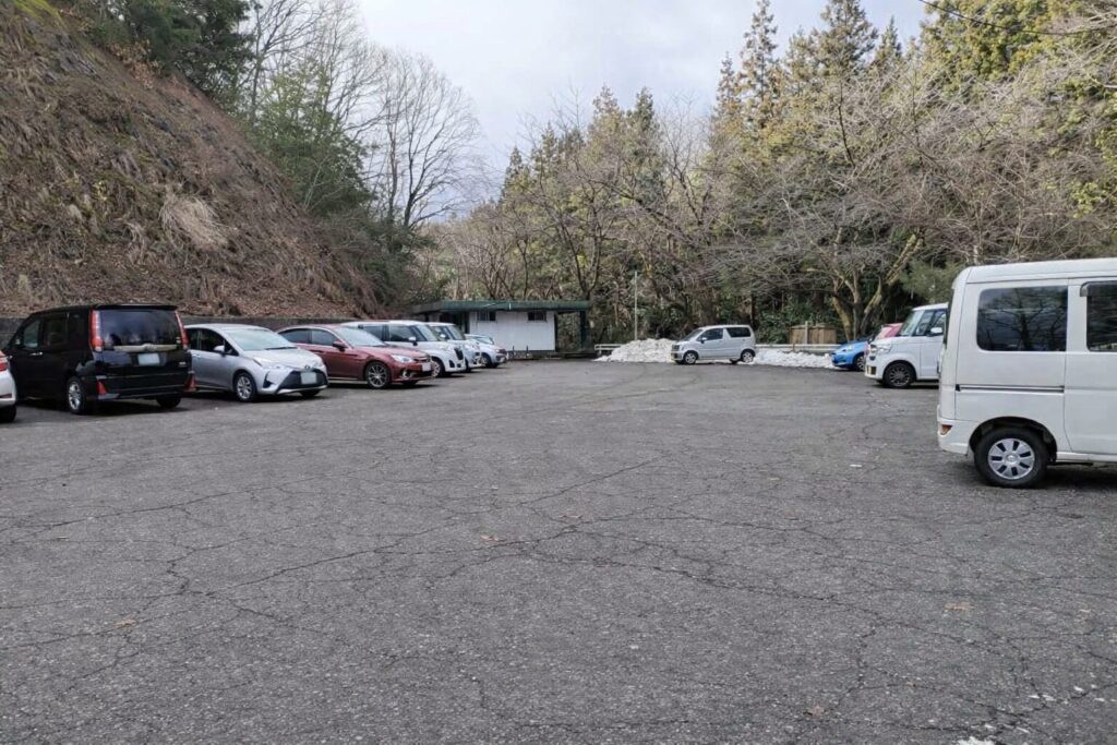 ハイキングコースは全長1,800mで、登り40分、下り30分が標準タイムです。慣れれば25分くらいで登れますが、初心者は最初は60分くらい見ておくと安心です。駐車場は、登山口と湯っ多里館の駐車場を利用できます。トイレは駐車場、登山道中腹にありますが、湯っ多里館駐車場脇・登山道中腹のトイレがきれいですよ。また、山頂に茶屋がありますが、不定休なので開いていたらラッキーと思うといいでしょう。