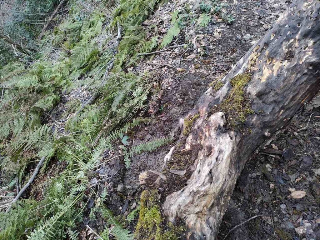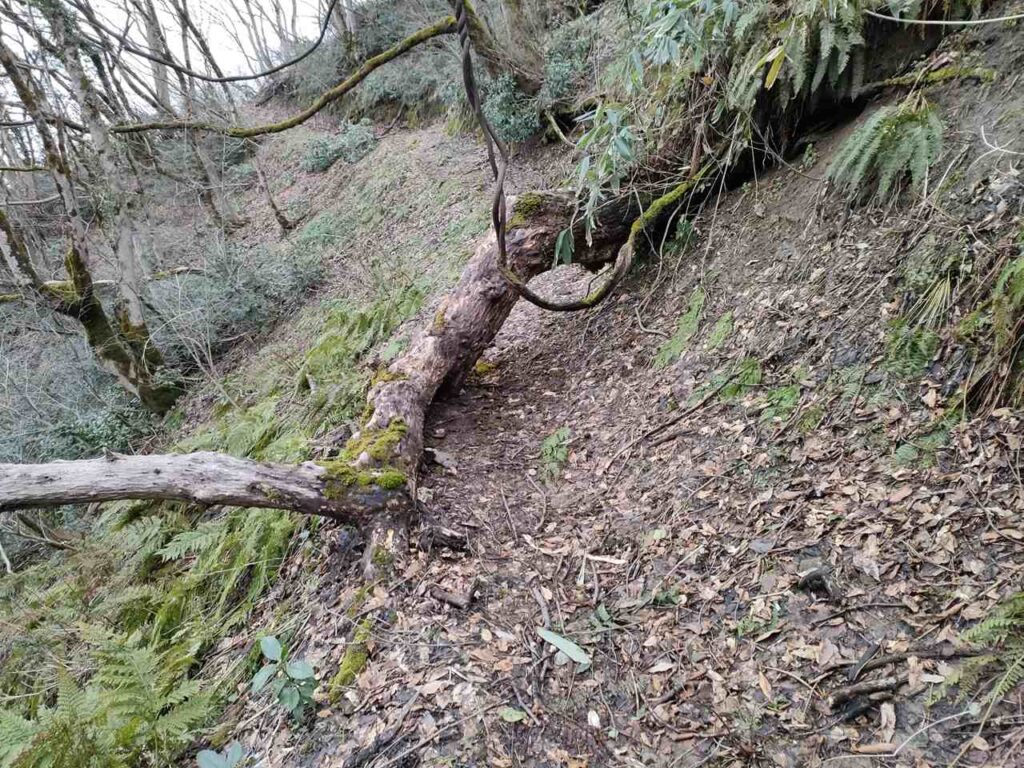 途中、登山道を木がふさいでいる場所があります。