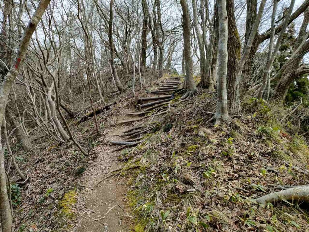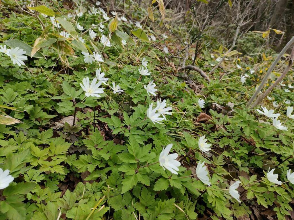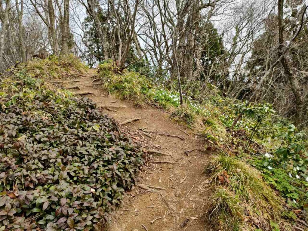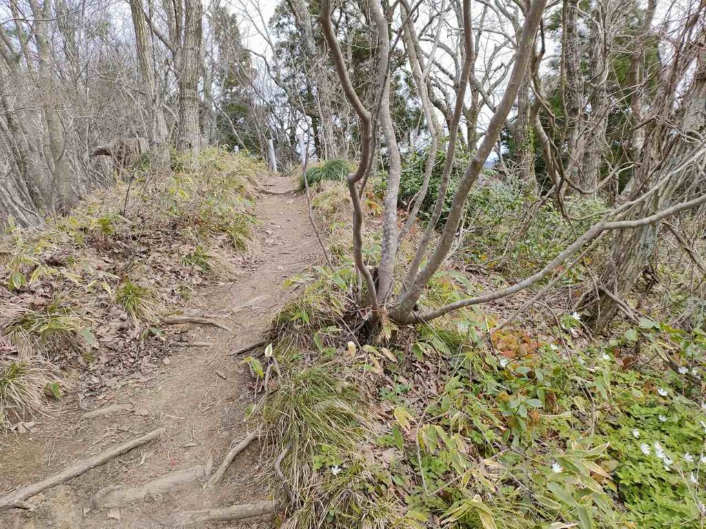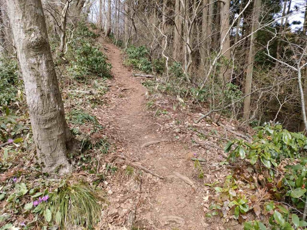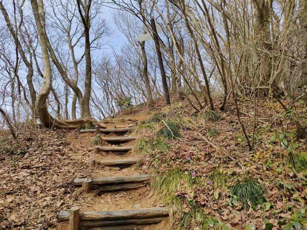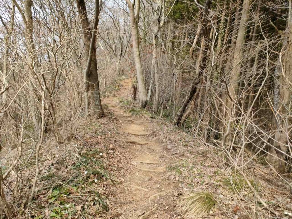 距離はありますが、比較的なだらかで登りやすいことが特徴です。3月中旬から4月上旬は、雪割草やカタクリが咲くので花を楽しみながら登ることができます。ですが、春以降はそこまで人気がないので、登るなら春がおすすめのコースです。
