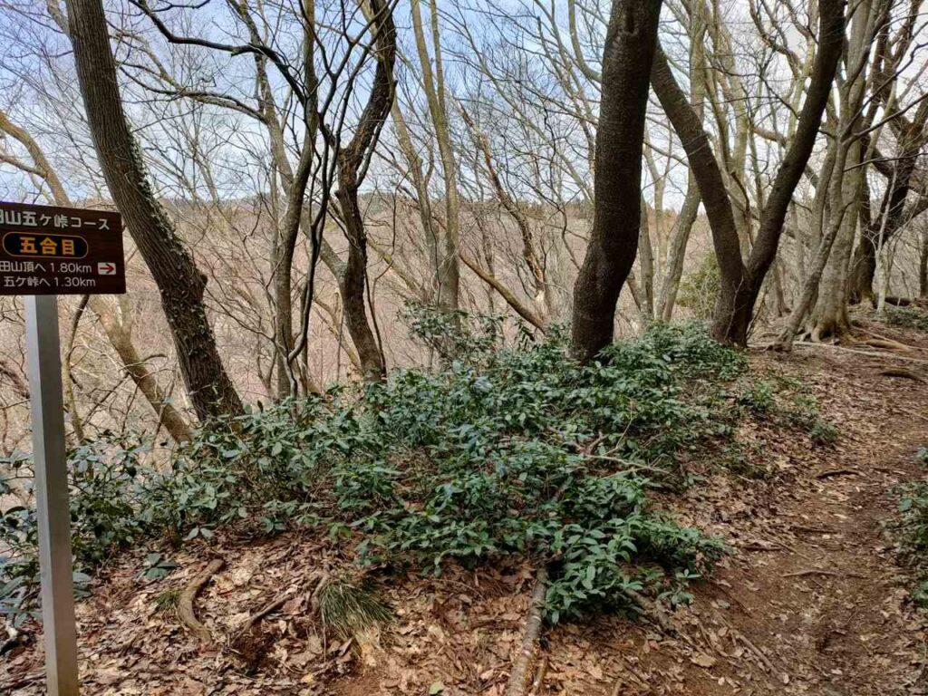 五ケ峠コースは全長3.1kmと、公式コースでは2番目の長さがあります。また、登山口の標高が高く、初心者でも登りやすいです。ただし、駐車場脇のトイレは水もないので、使い勝手がいいとは言えません。