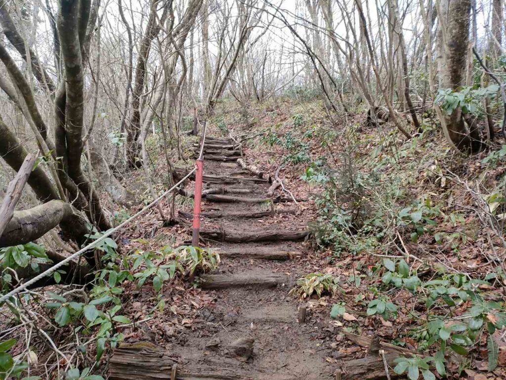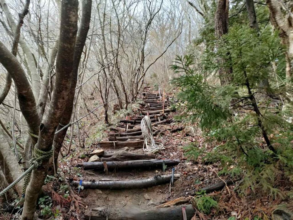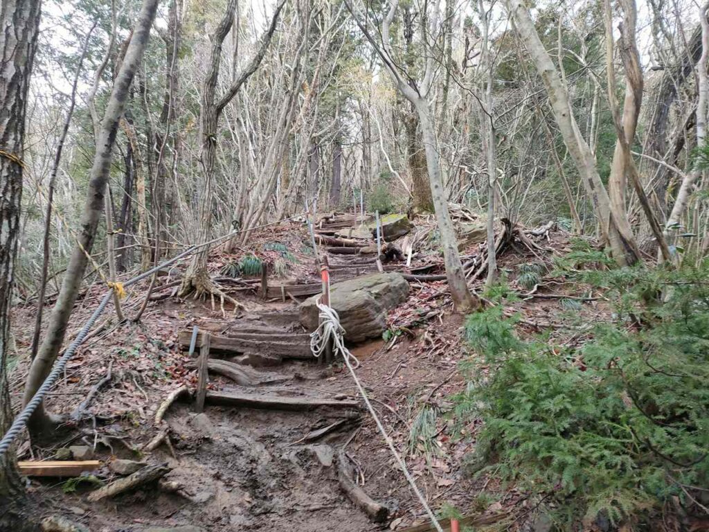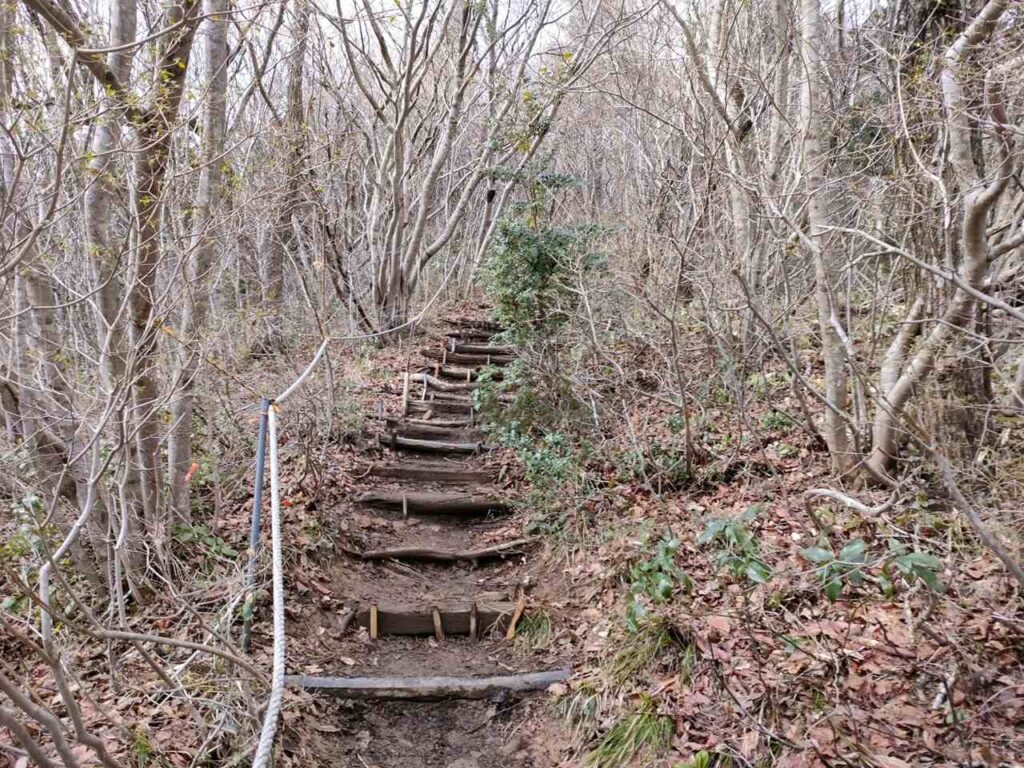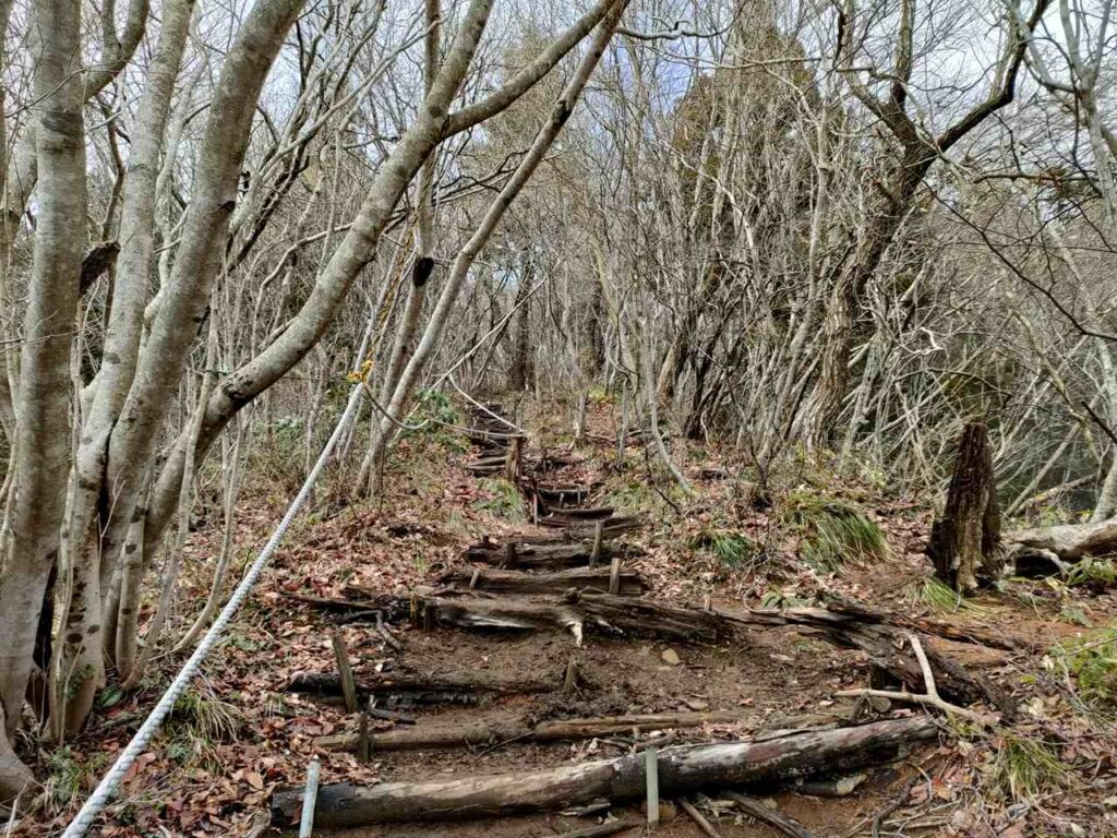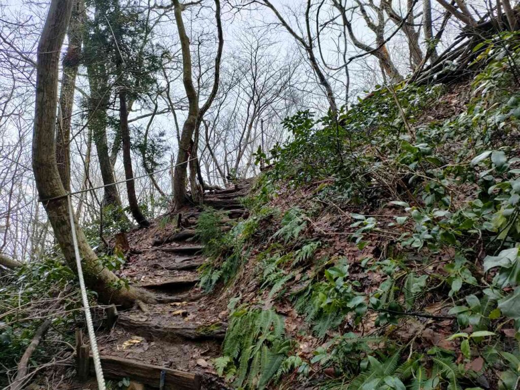 この急登はそこまで長くないですが、慣れていないとかなりきつく感じます。何度か休憩しながら登っていきましょう。