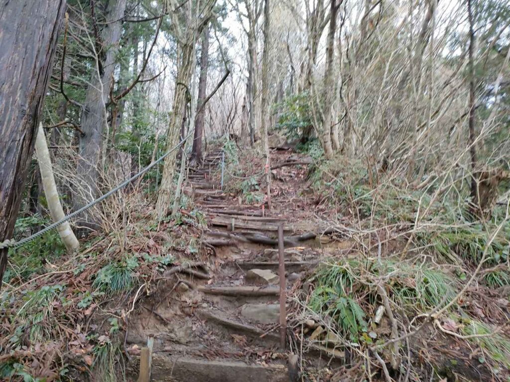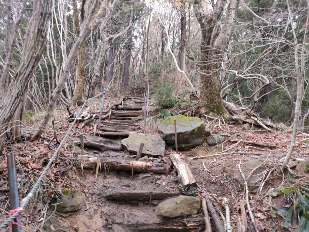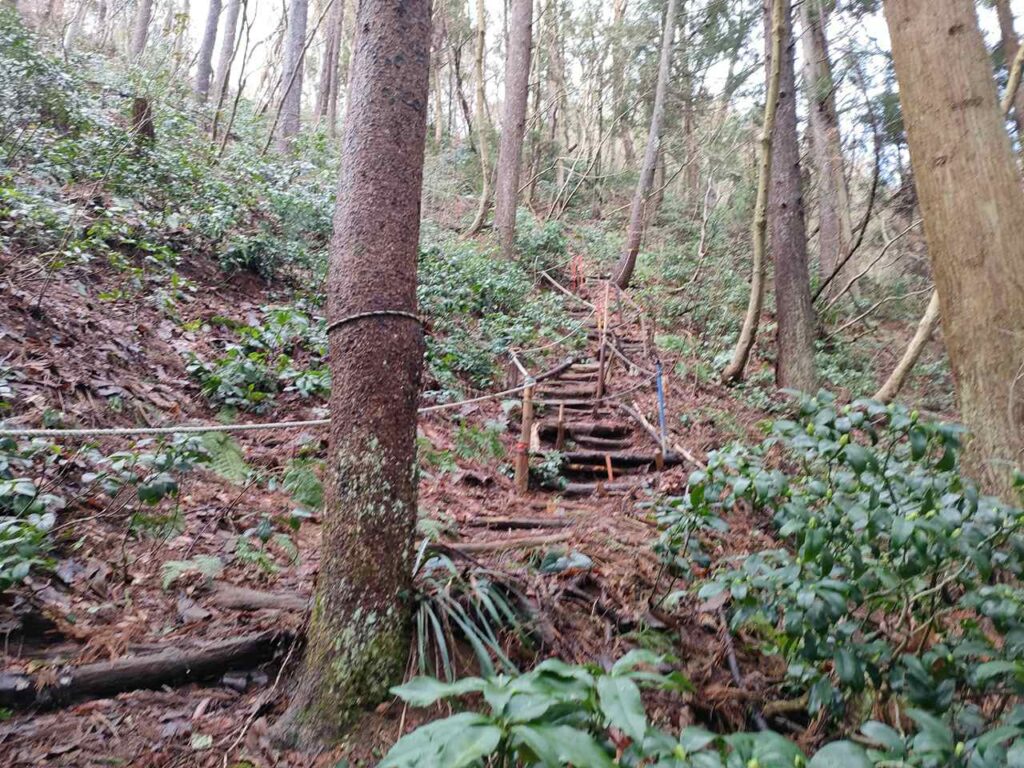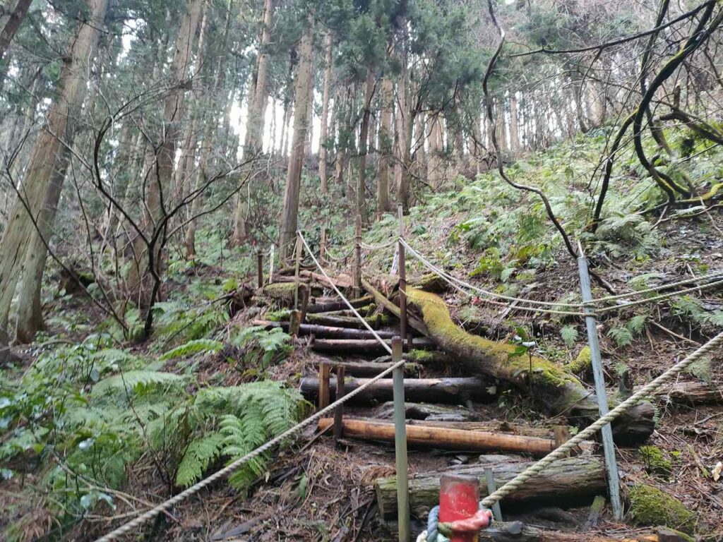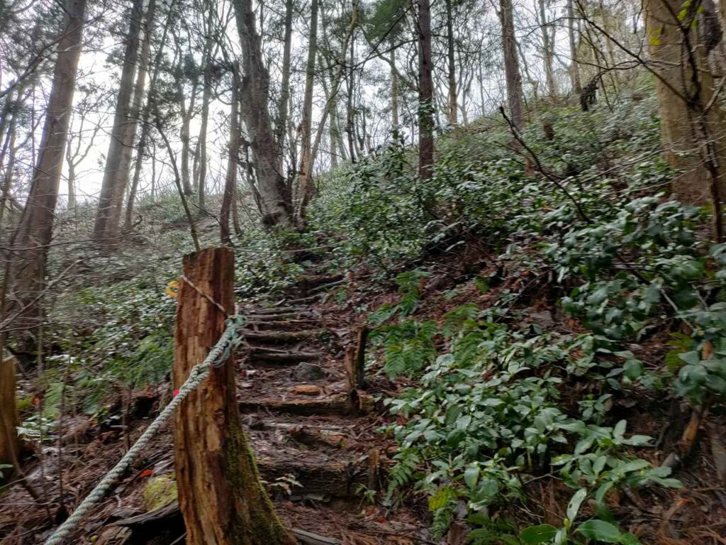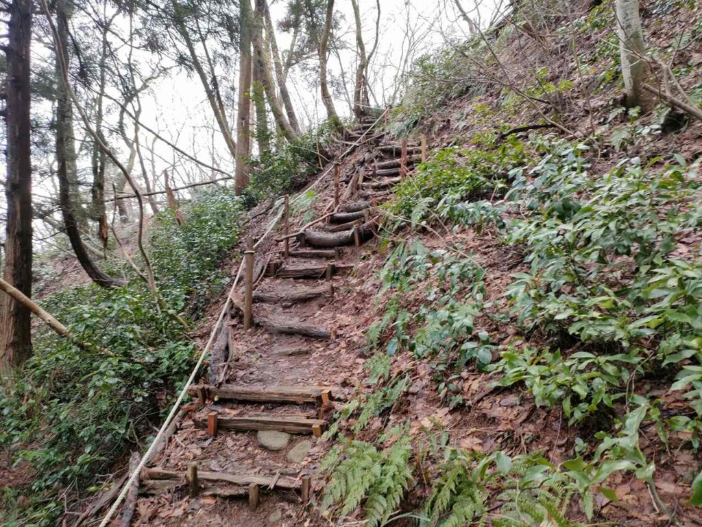 この急登はそこまで長くないですが、慣れていないとかなりきつく感じます。何度か休憩しながら登っていきましょう。