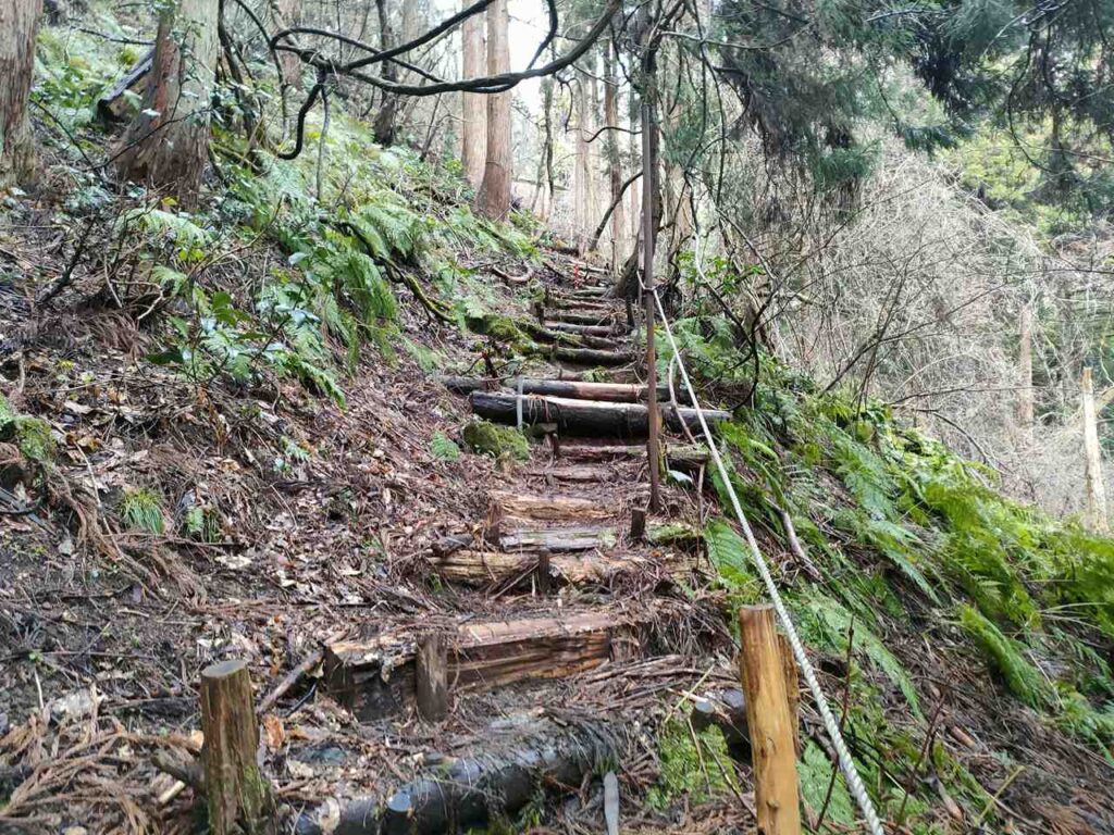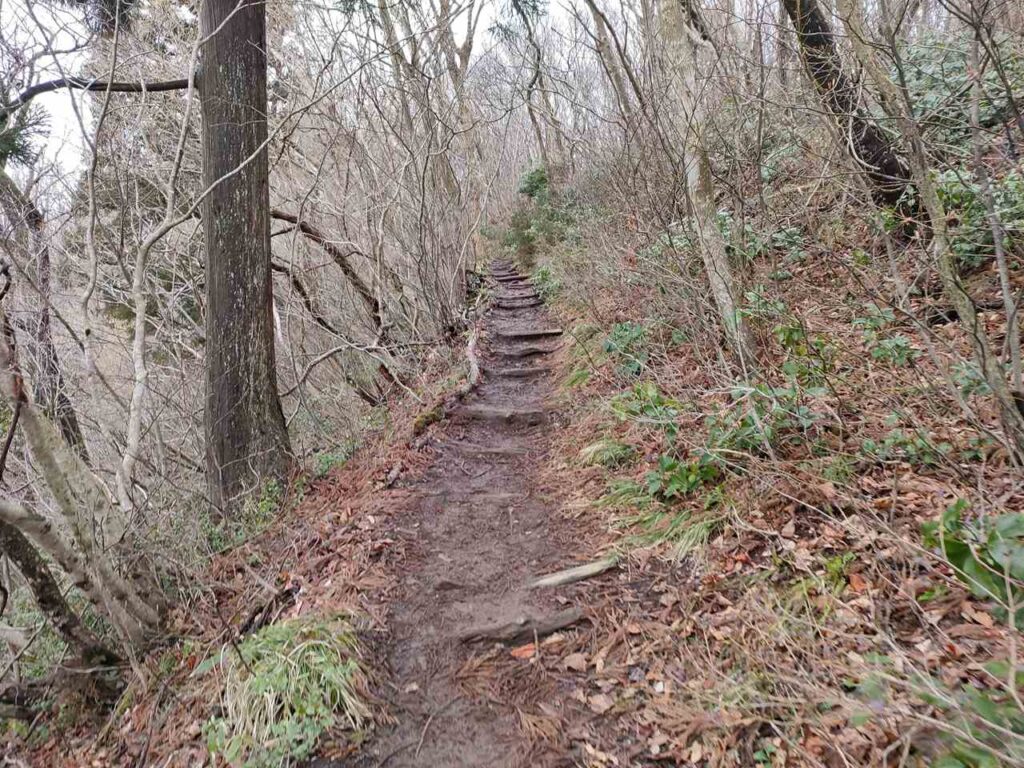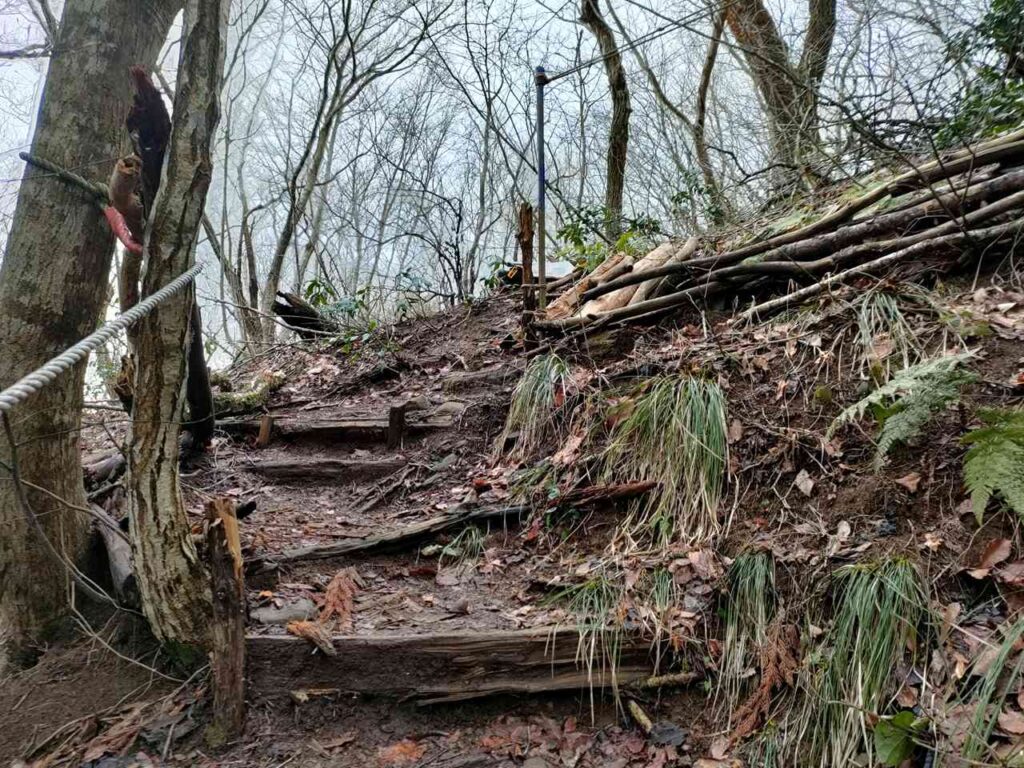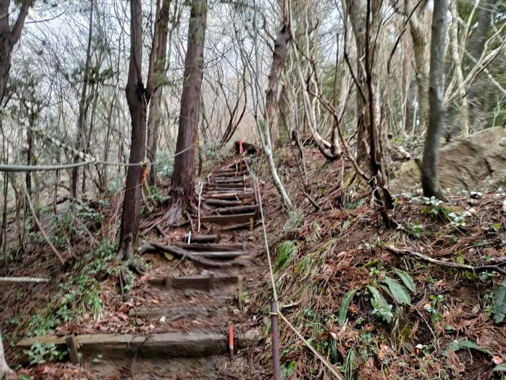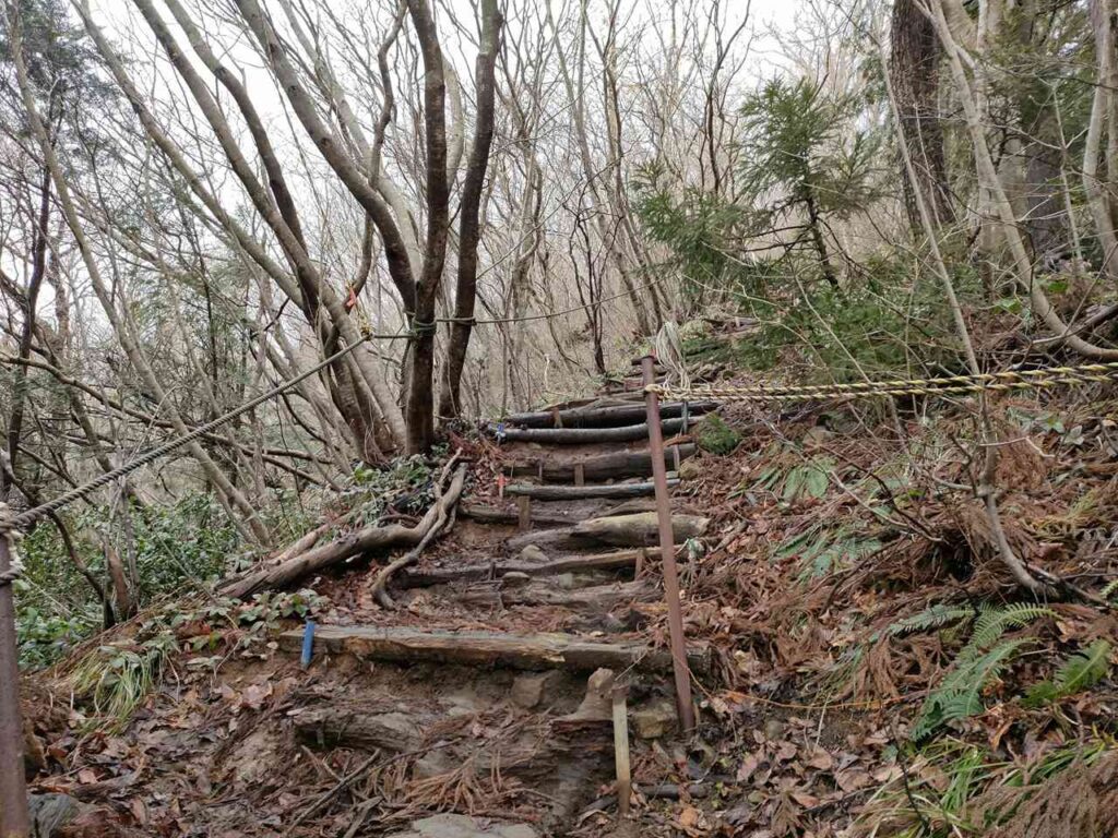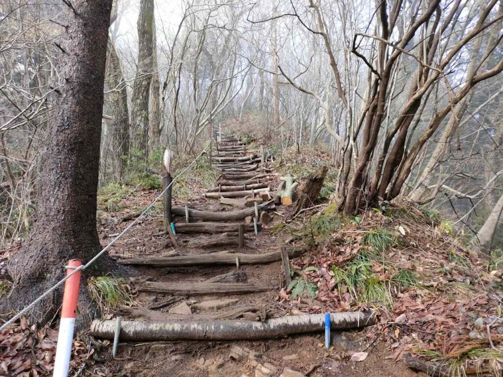 この急登はそこまで長くないですが、慣れていないとかなりきつく感じます。何度か休憩しながら登っていきましょう。