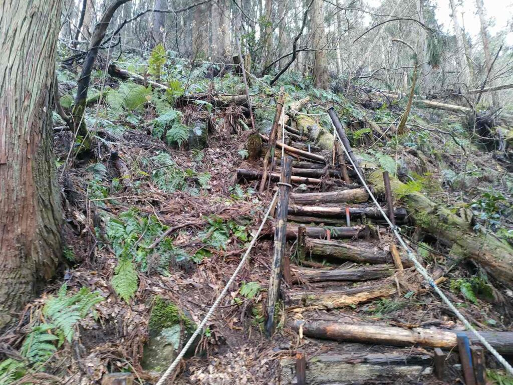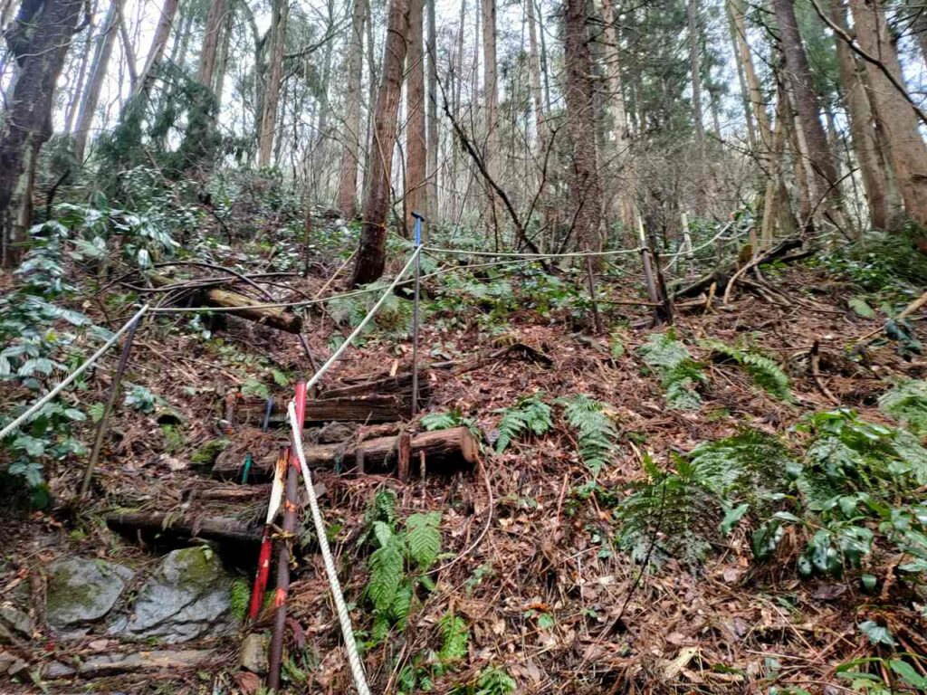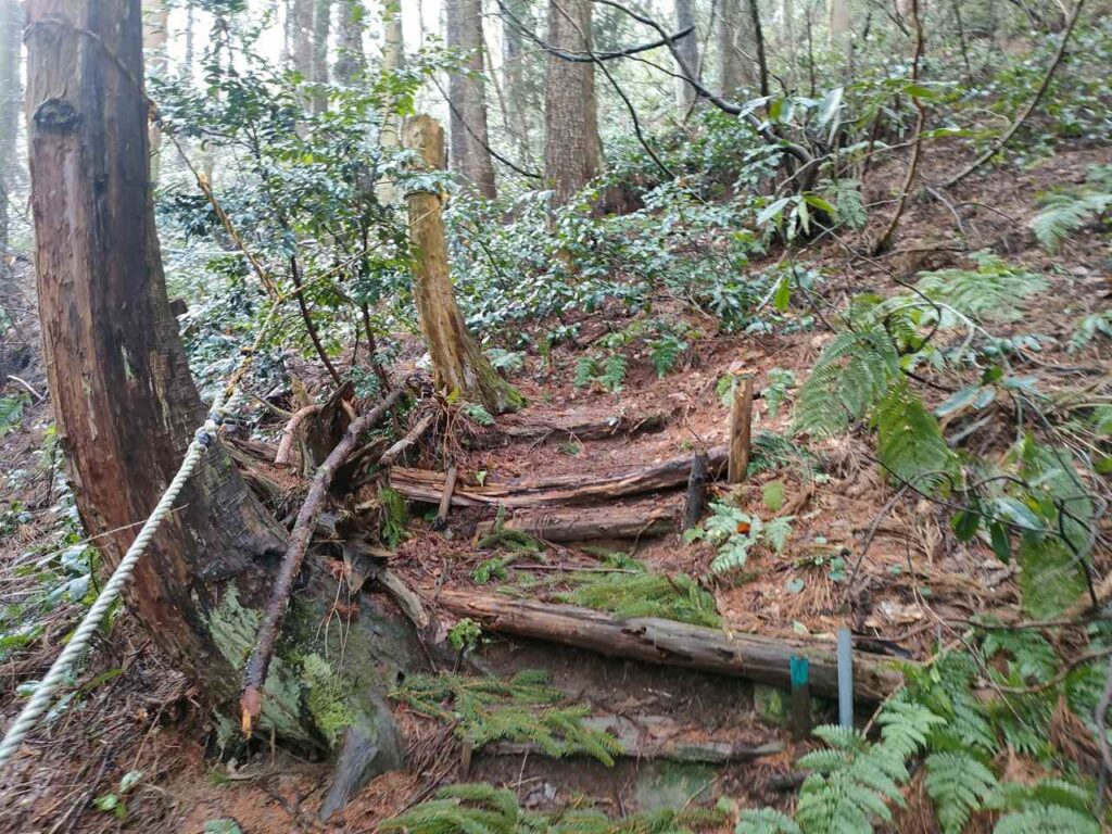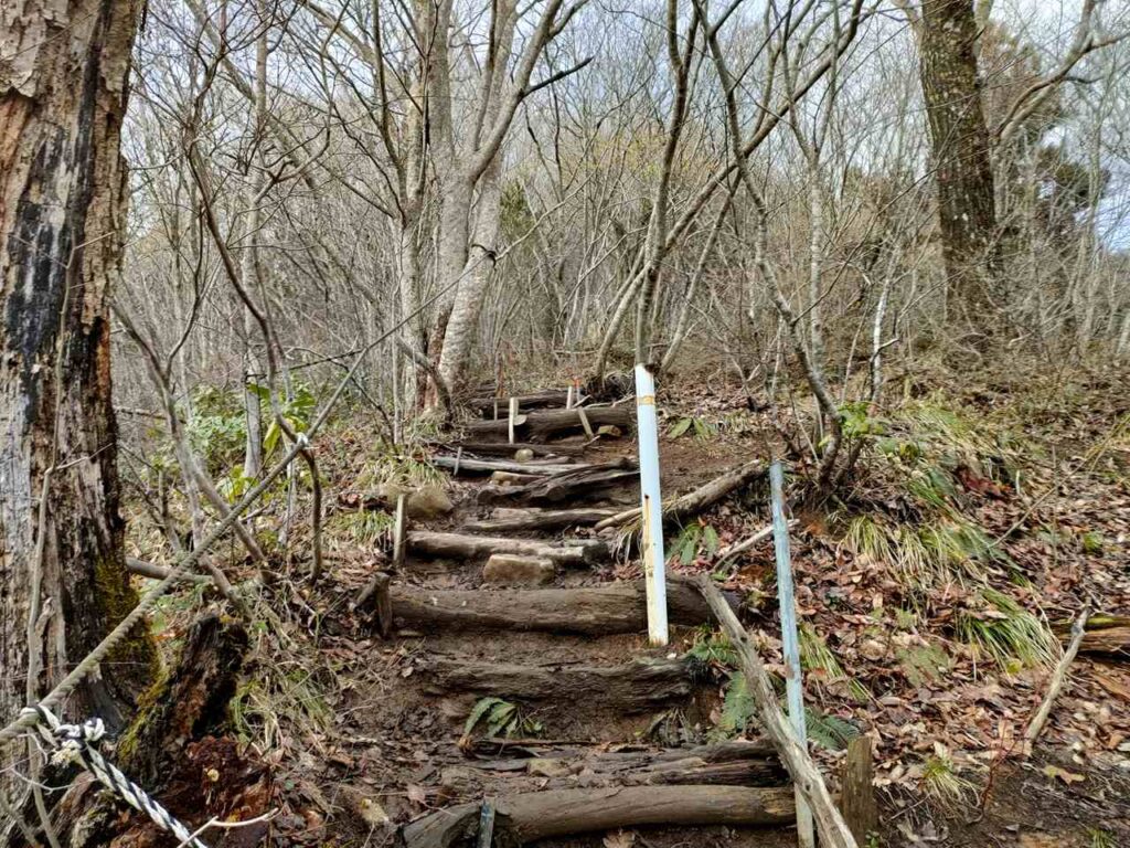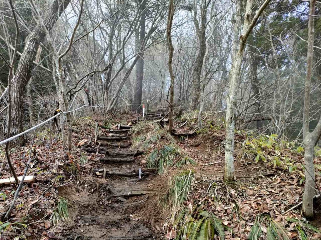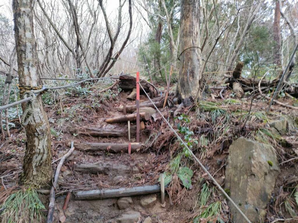 この急登はそこまで長くないですが、慣れていないとかなりきつく感じます。何度か休憩しながら登っていきましょう。