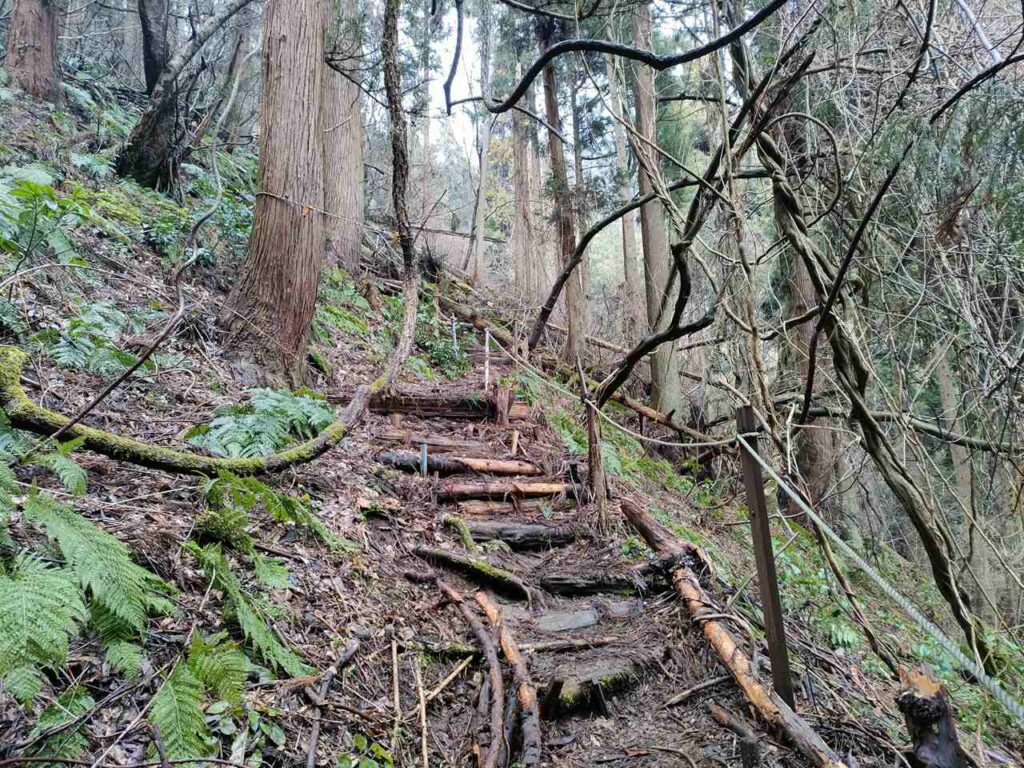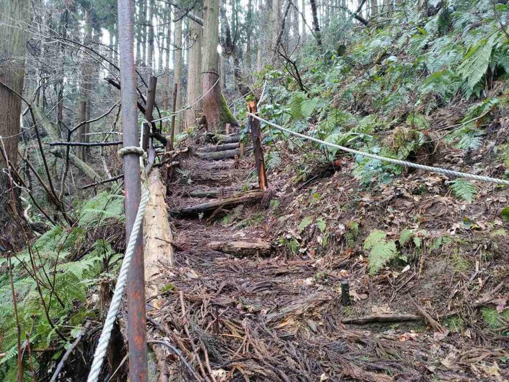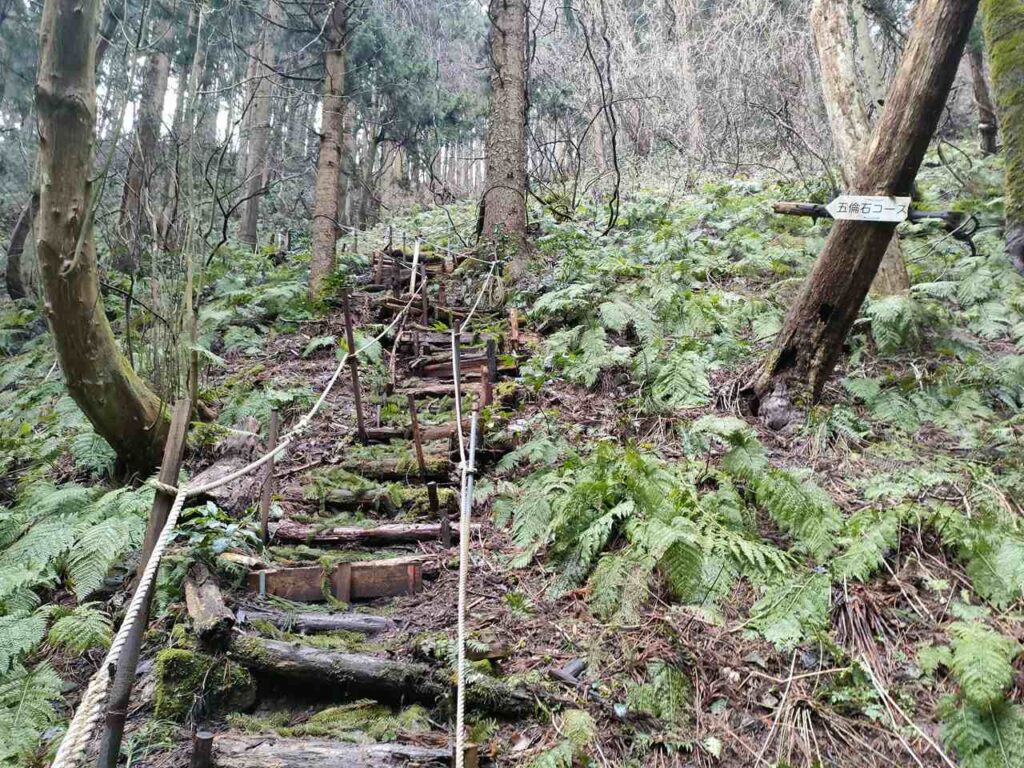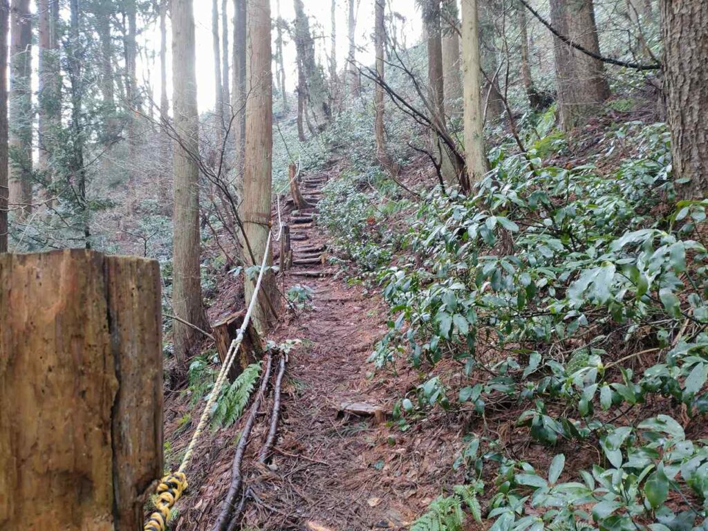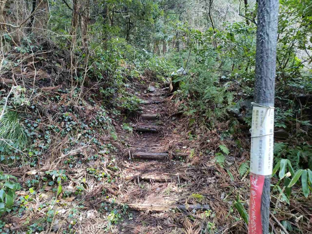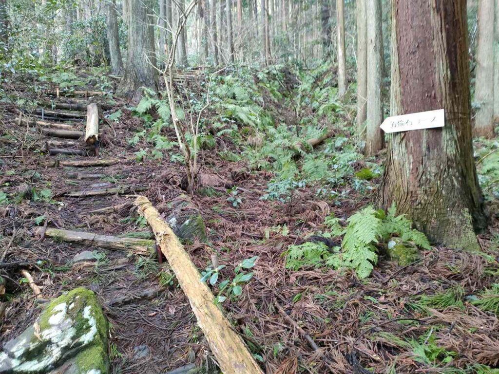 5合目の看板から少しすると、ホタルの里コースとの合流前の急登になります。