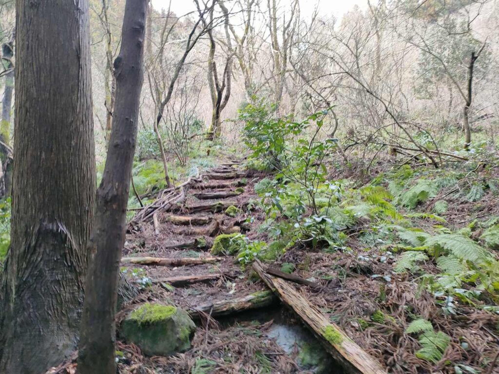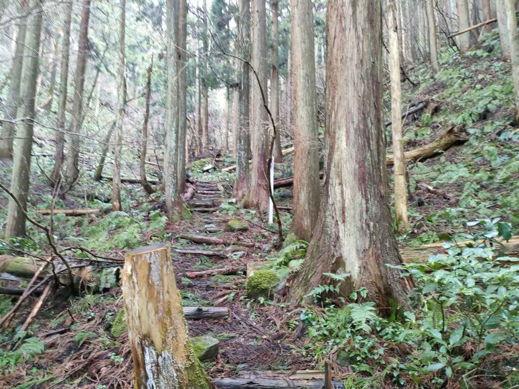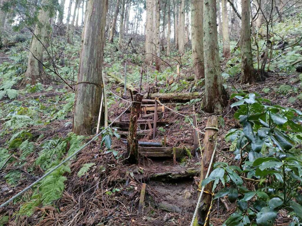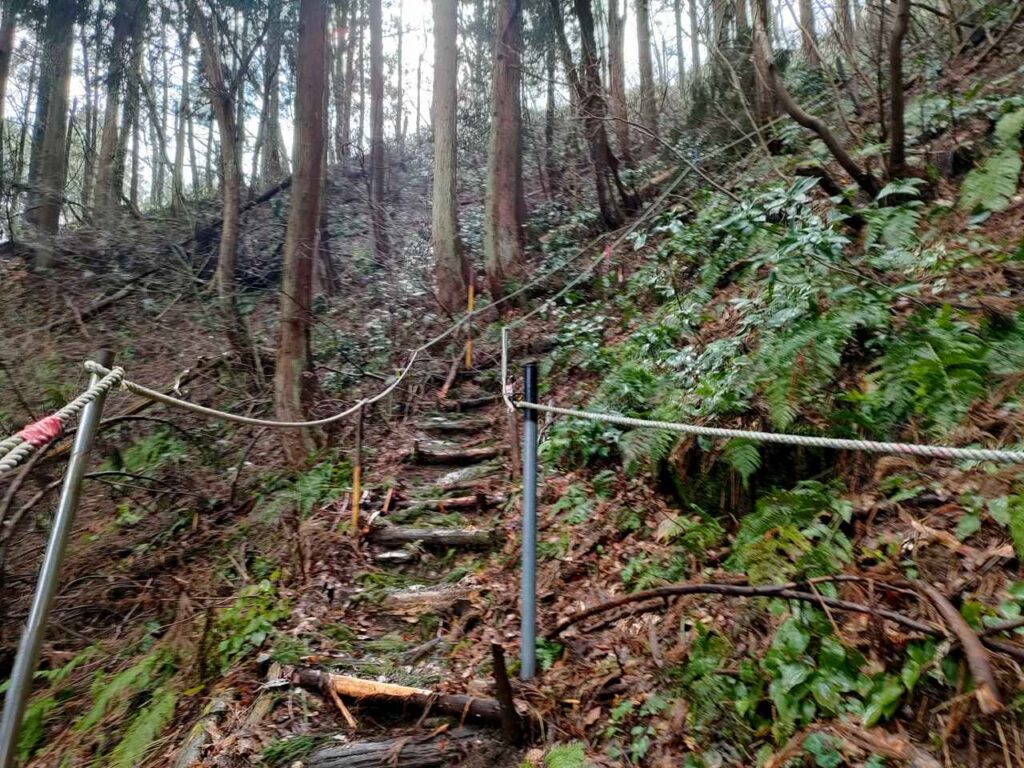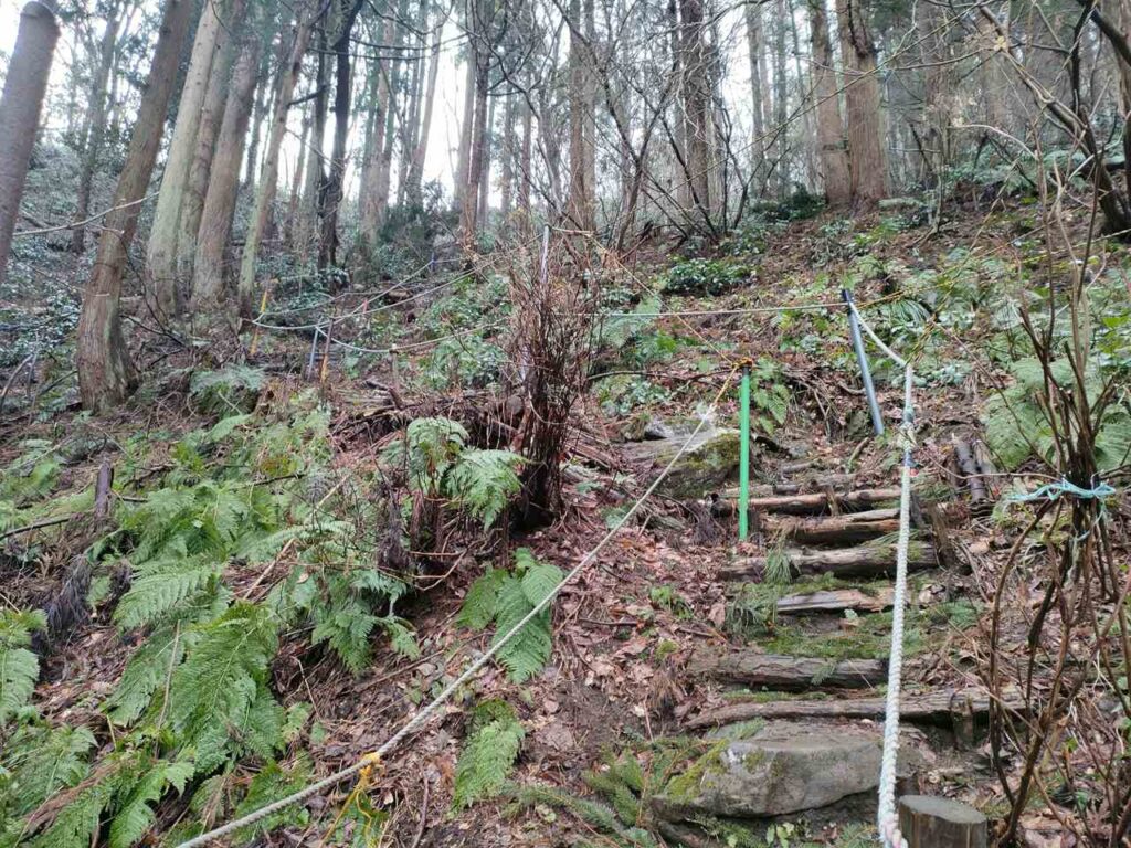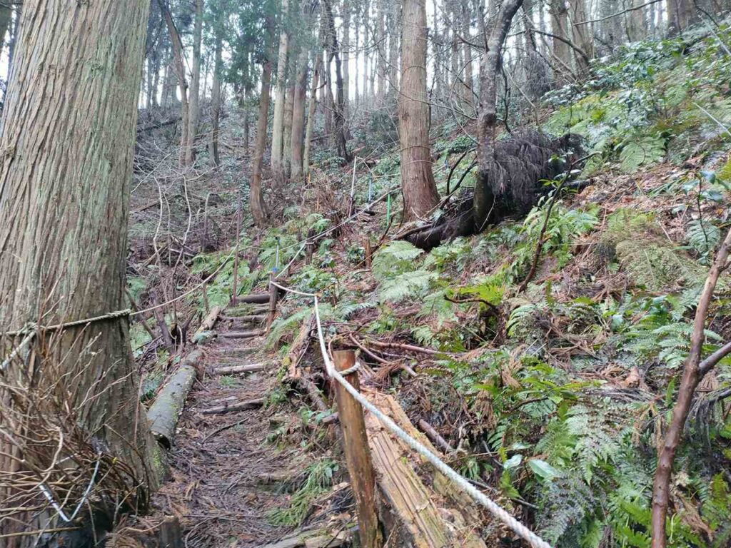 5合目の看板から少しすると、ホタルの里コースとの合流前の急登になります。