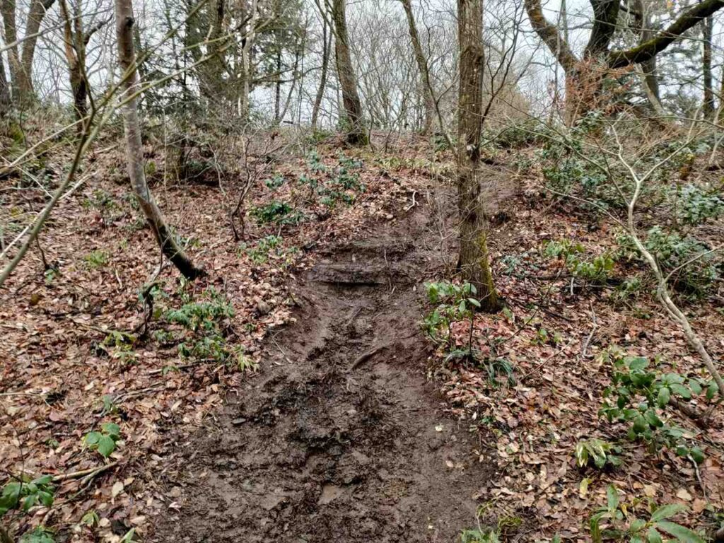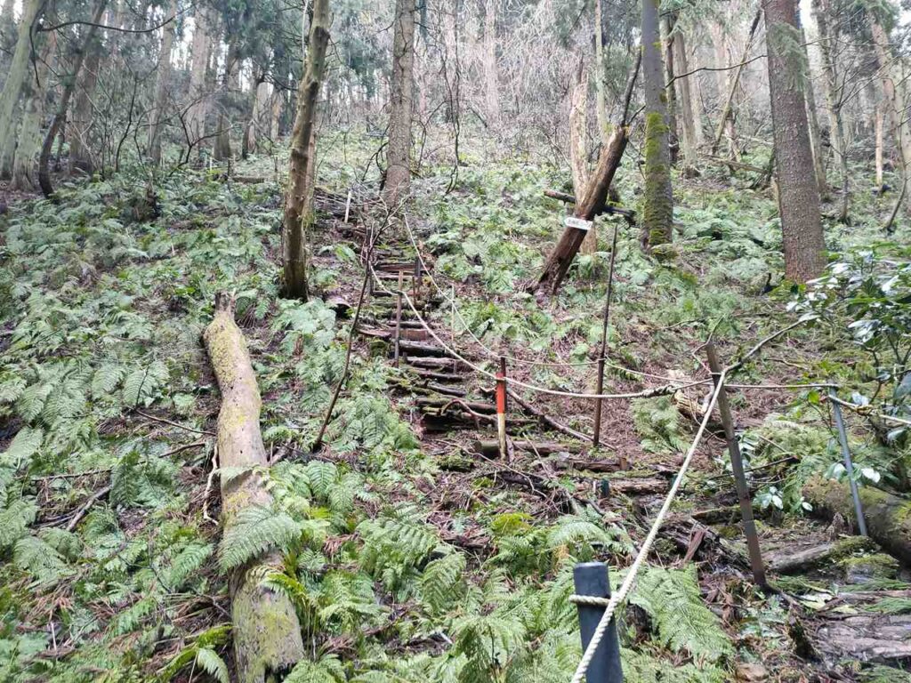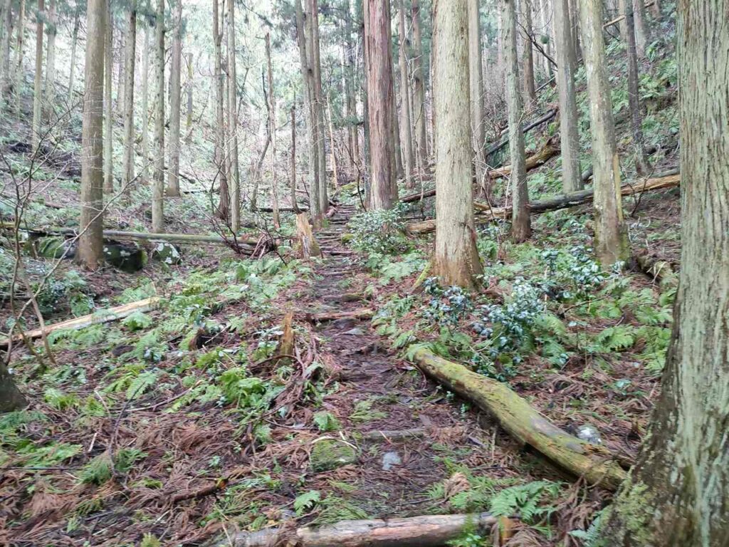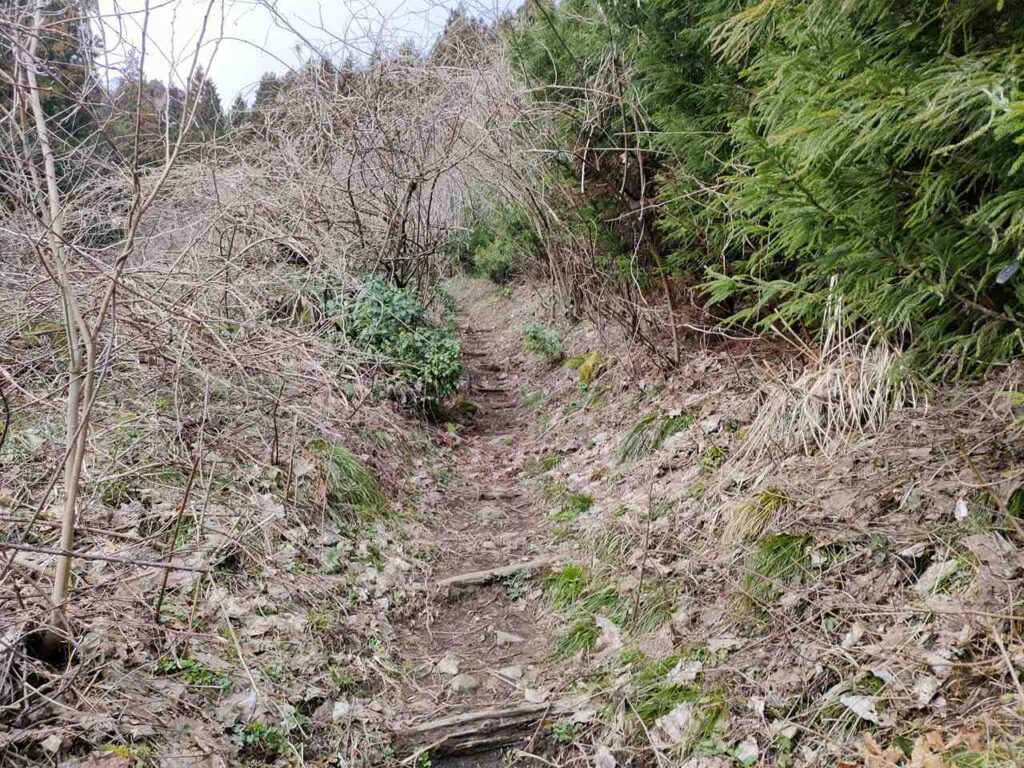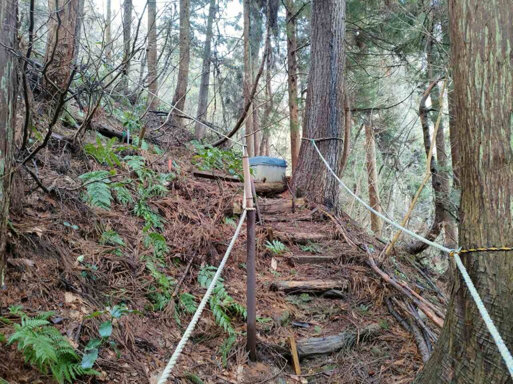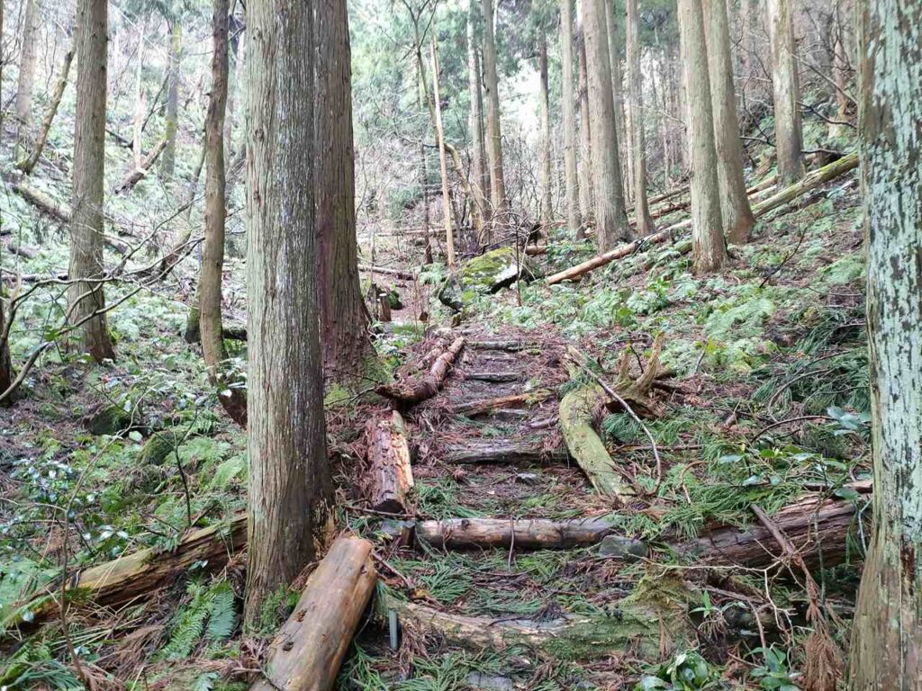 5合目の看板から少しすると、ホタルの里コースとの合流前の急登になります。