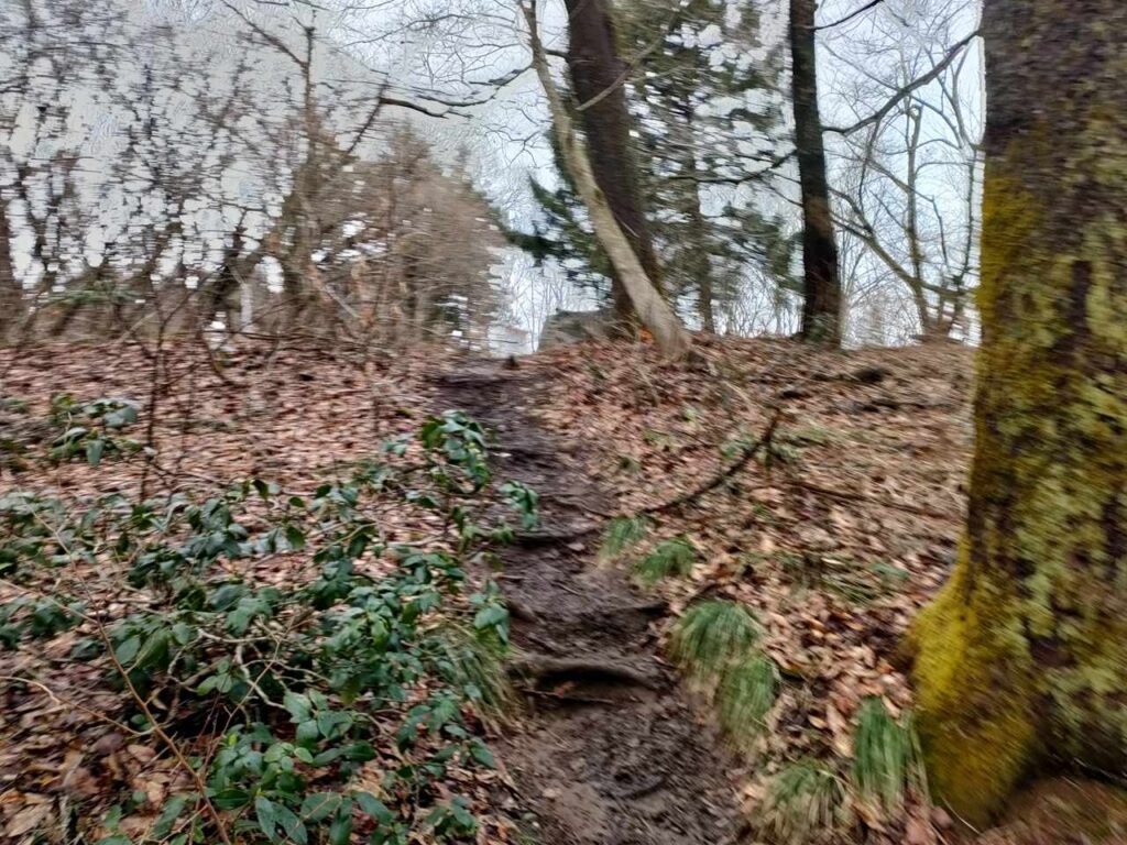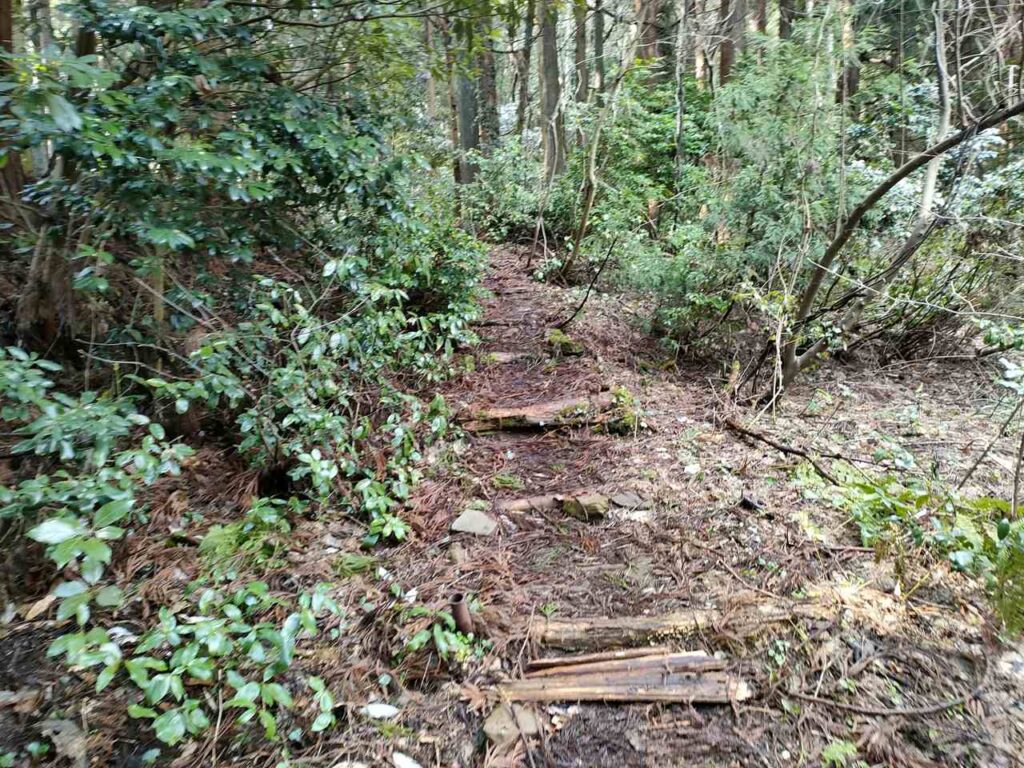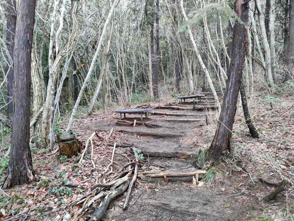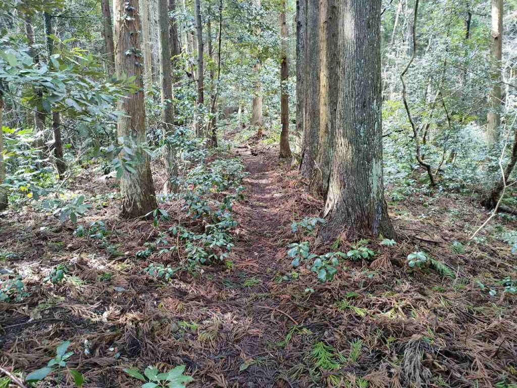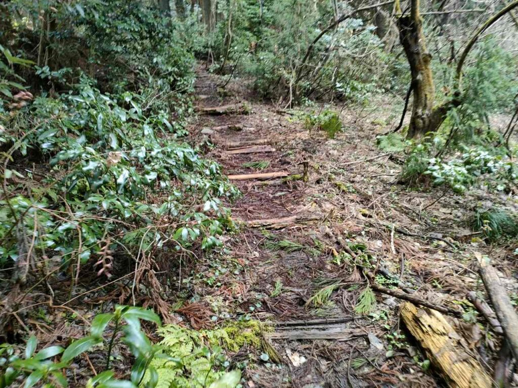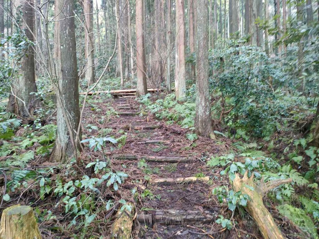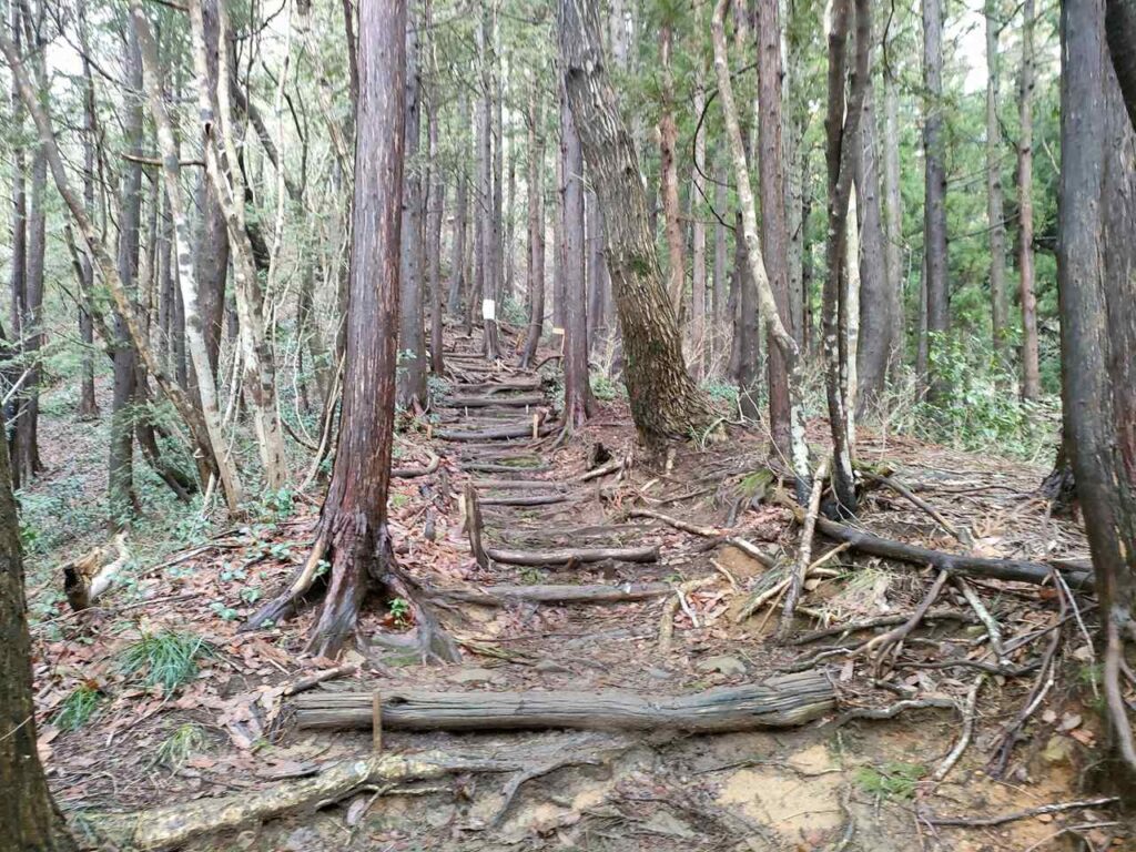 合流までは地面はふかふかしているので、歩き心地はいいです。しかし、合流前にも急階段があるので、結構体力が必要です。しかし、景色はいいわけではないので、景色を楽しみたい人には向いていません。