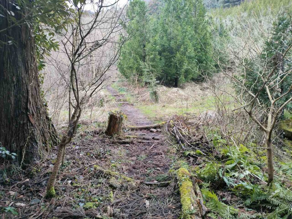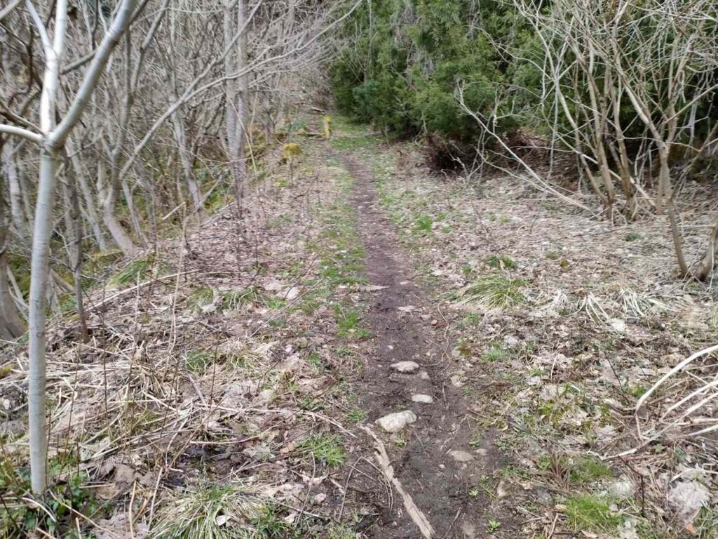 右でも左でも同じ場所に出るので、好きな方を行きましょう。右は夏は生い茂っているので、左に行く方がいい気がします。