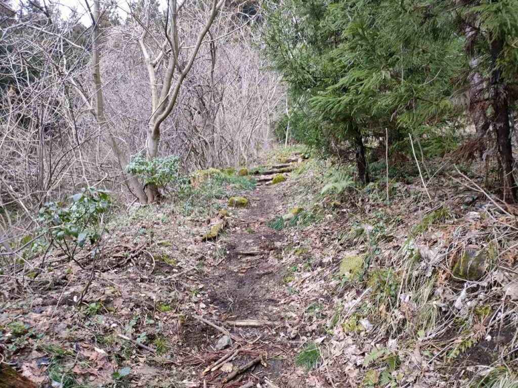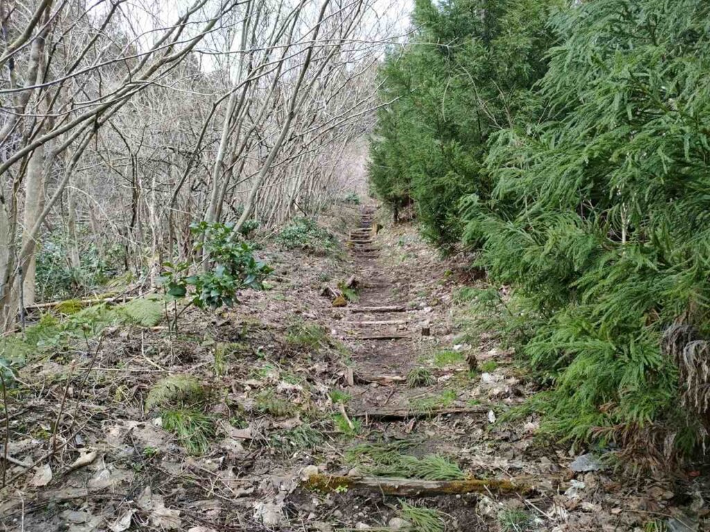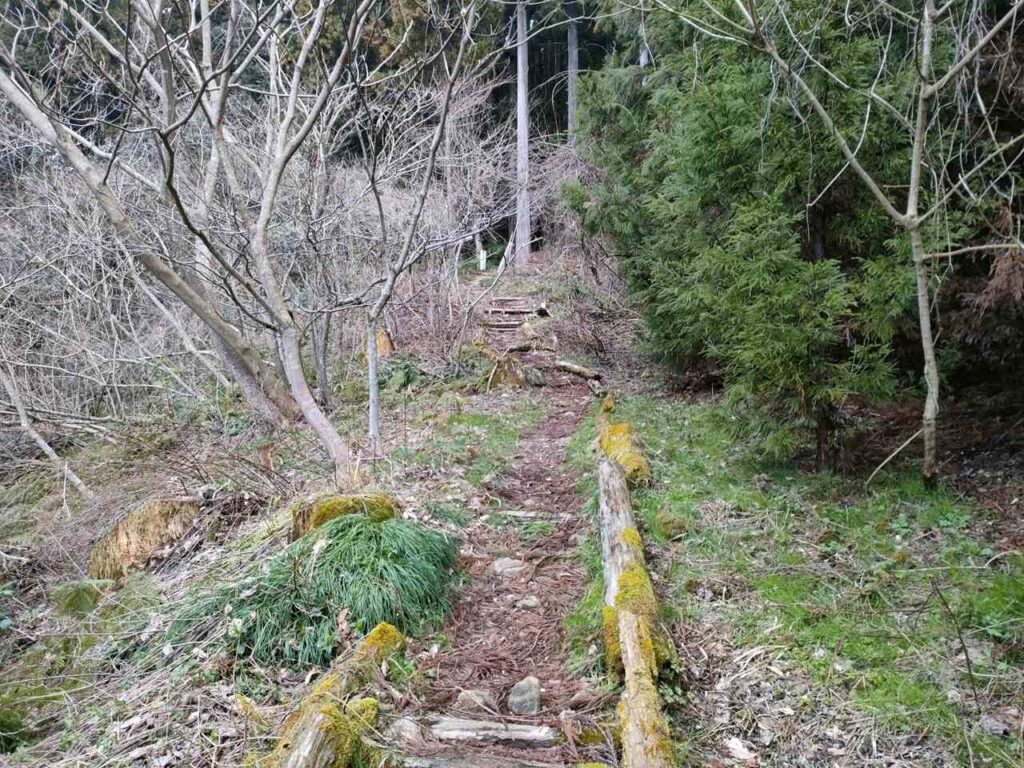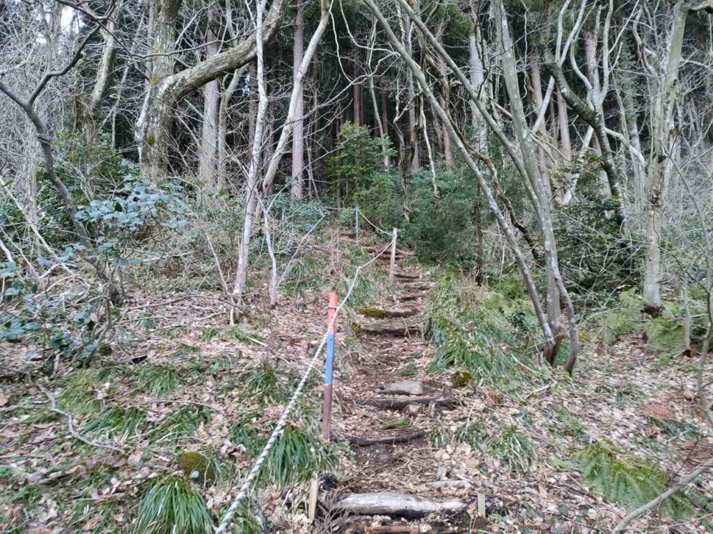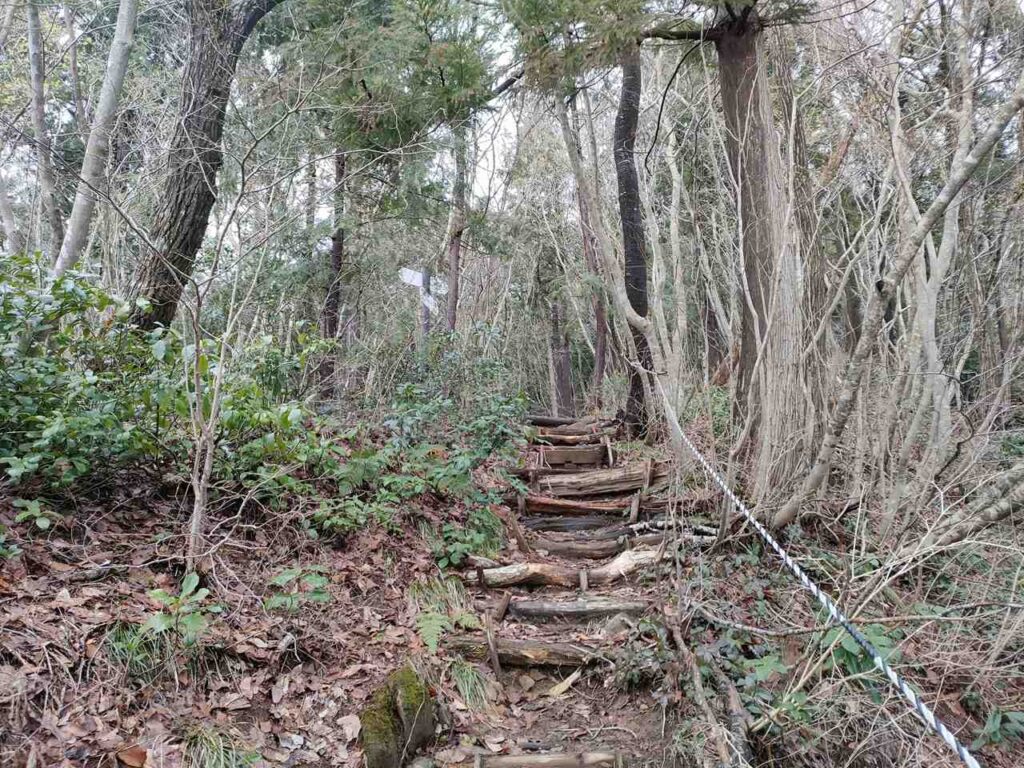 角田山のごりん石コースは、ほたるの里コースの最後の急階段手前に合流します。