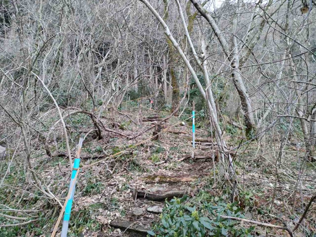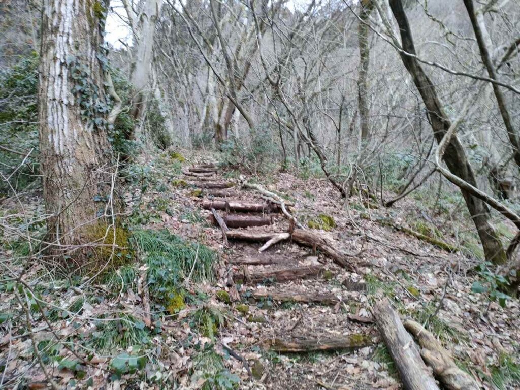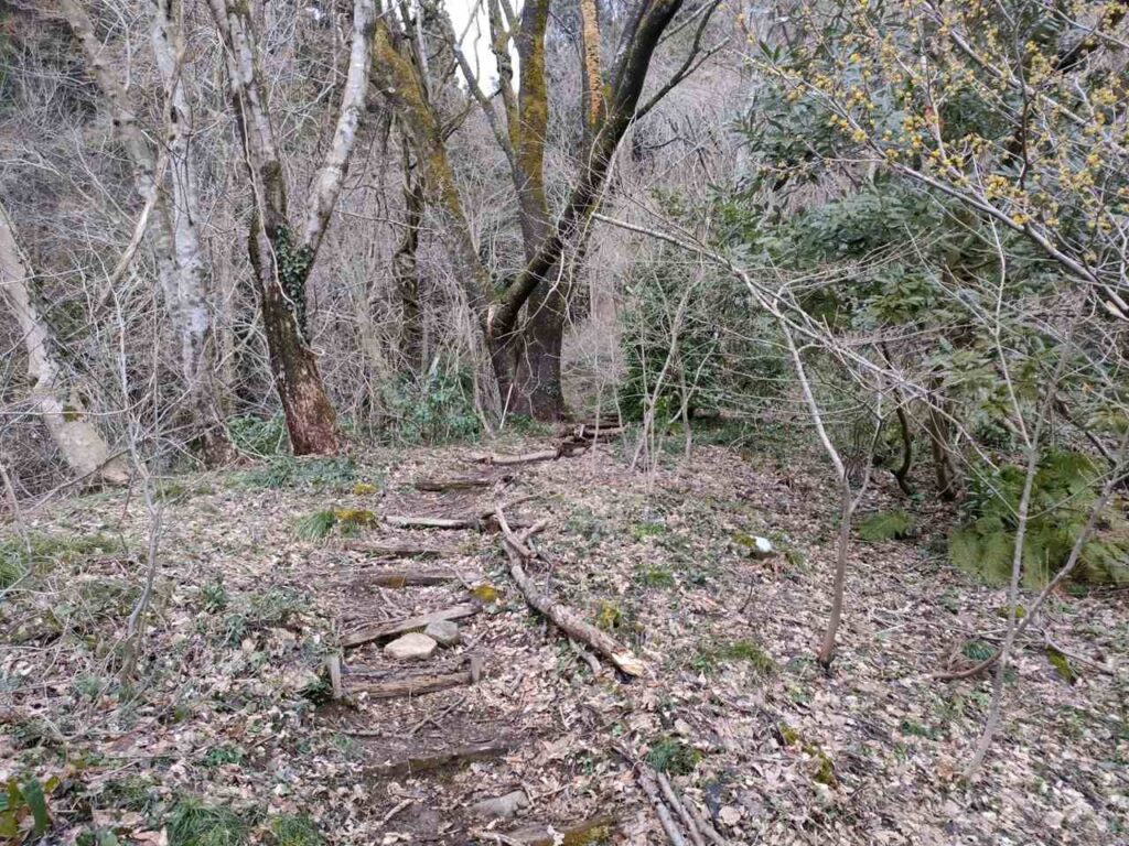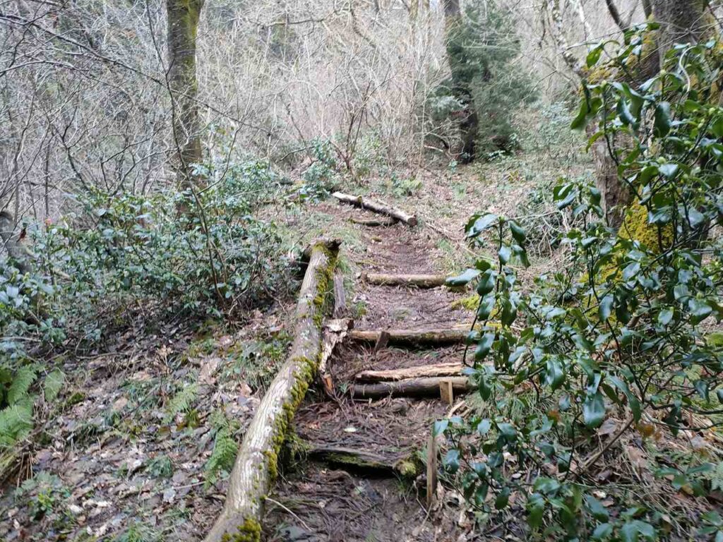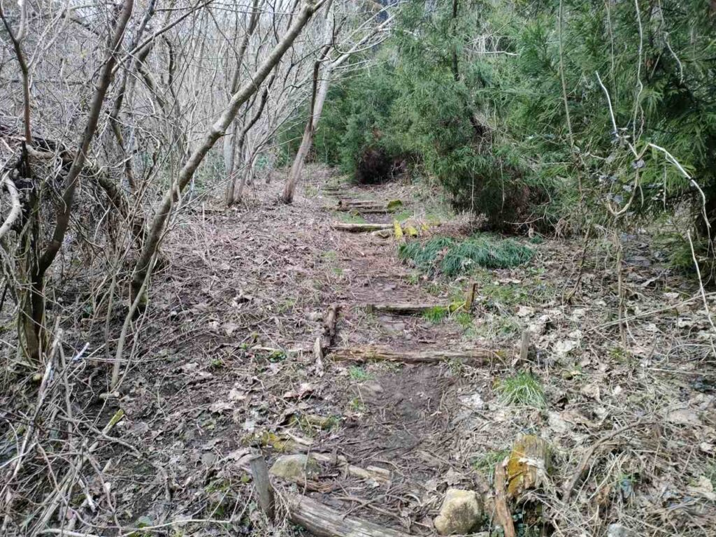 角田山のごりん石コースは、ほたるの里コースの最後の急階段手前に合流します。