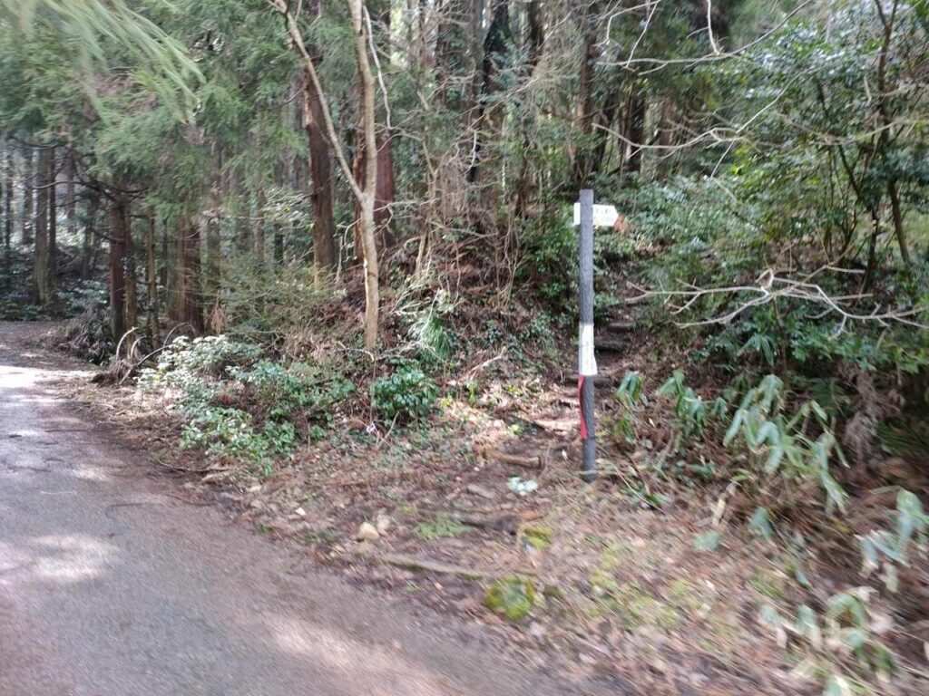 駐車場から林道を挟んだところに、ごりん石コースの登山口があります。
