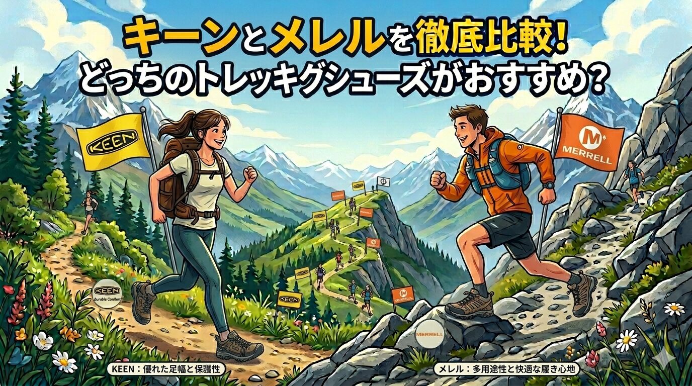 価格、クッション性、グリップ力、防水透湿性で強みを取りやすく、山道を軽快に歩きたい人と相性が出ます。対してキーンは足幅のゆとり、つま先保護、見た目の個性で選びやすく、快適性と存在感を重視する人に向きます。重視する項目がはっきりしているほど選び分けしやすい組み合わせです。