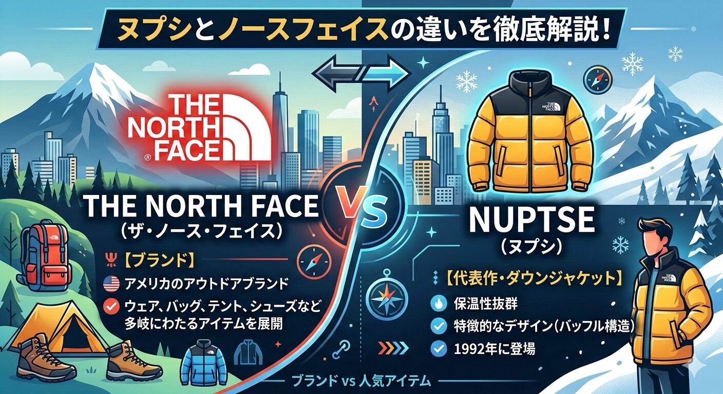 ヌプシとノースフェイスの違いは、ブランド名と商品名の関係にあります。